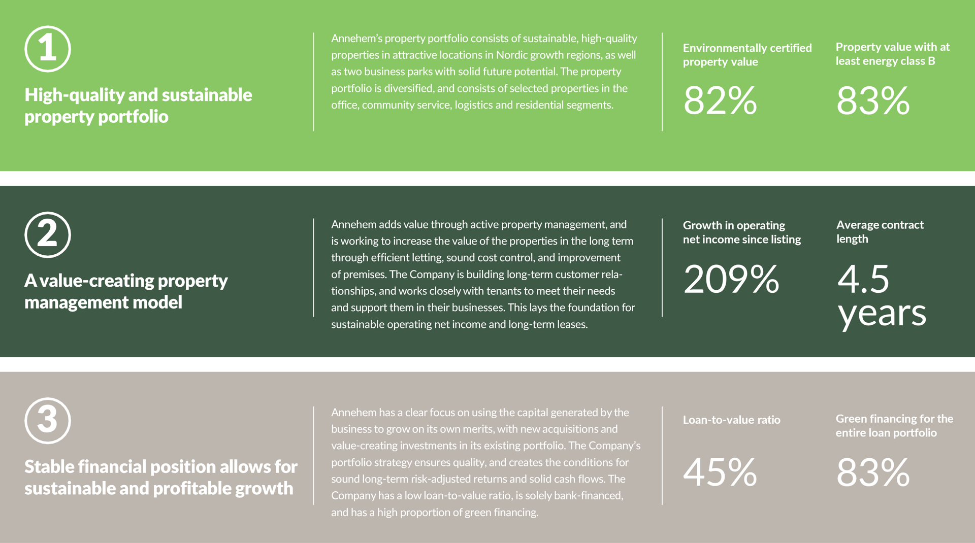 With a clear strategy, solid cash flow, good financial stability, and strong owners, Annehem is creating long-term shareholder value.