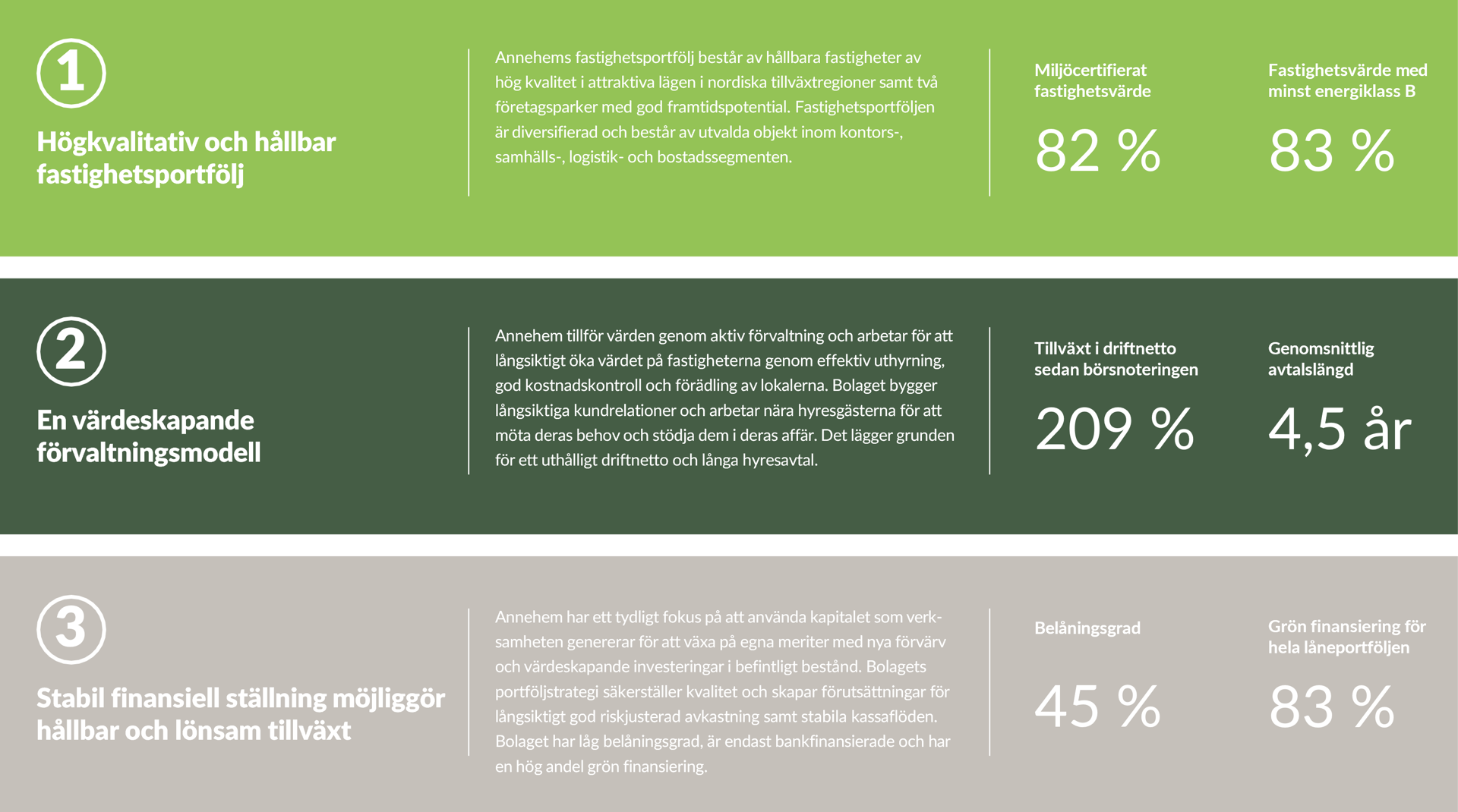 Med en tydlig strategi, starkt kassaflöde, god finansiell stabilitet och starka ägare skapar Annehem långsiktigt aktieägarvärde.