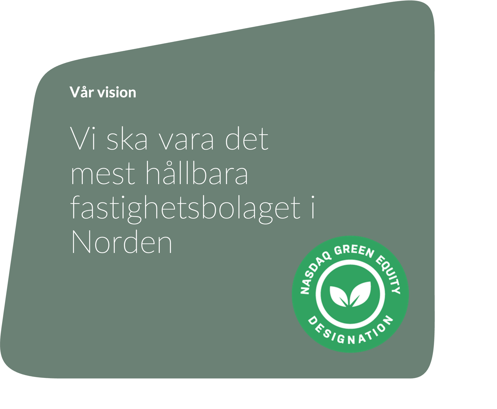 Vi har en hög hållbarhetsprofil och en ambitiös vision om att vara det mest hållbara fastighetsbolaget i Norden. Det innebär att vi förenar lönsamhet och hållbarhet i vår dagliga fastighetsverksamhet och investeringsbeslut. Det gör vi genom hållbara förvärv, energieffektivisering, optimering av fastigheter och gröna förflyttningar i samarbete med hyresgäster. Vi engagerar oss i lokalsamhället och arbetar för att främja jämställdhet, mångfald och välbefinnande för våra anställda.