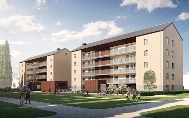 Byggnaderna är i 5 plan. Alla lägenheter i bottenplan har en uteplats och lägenheterna på resterande våningsplan har balkong. Samtliga i västerläge.