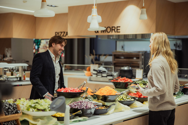 Restaurangen erbjuder dagligen ett varierat utbud av varma rätter och en stor salladsbuffé medans Frontyard Cafe erbjuder allt från en nyttig frukost till det söta fikat för att möta dagens alla behov.
